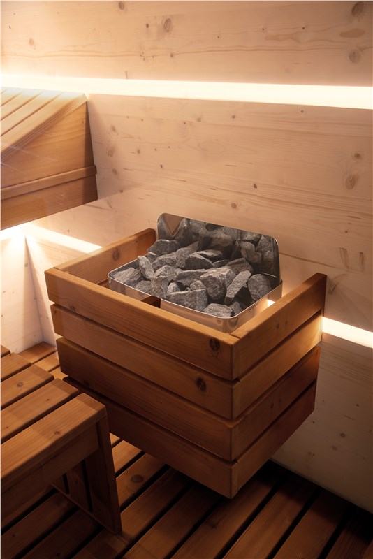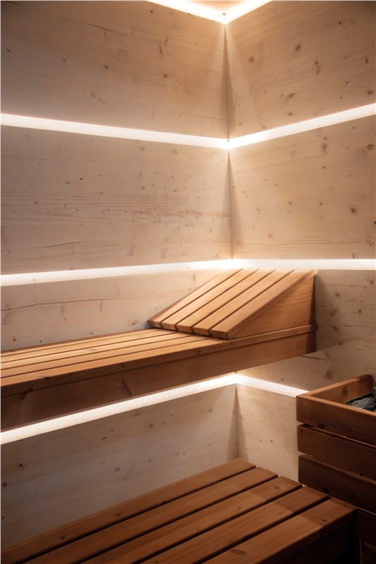 Pour être le plus complet possible et répondre à tous les besoins, parmi ses options, le sauna Aura propose un éclairage LED de luxe, pour rendre le bien-être encore plus enveloppant et total.